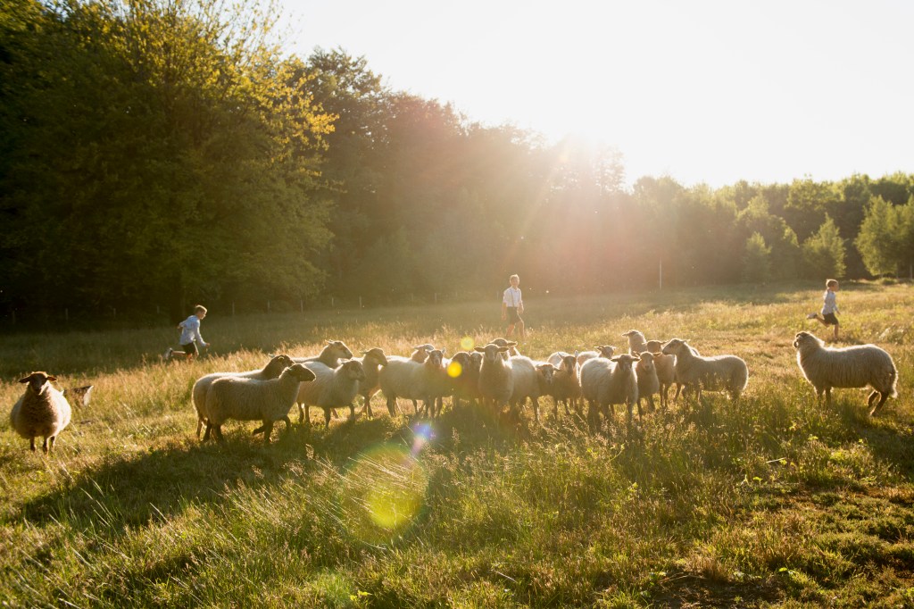 Wij hebben een kudde van een 50-tal Houtlandschapen. Het Houtlandschaap is een middelgroot kuddeschaap dat waarschijnlijk ontstaan is uit Ardense schapen die werden ‘verbeterd’ met vooral Vlaamse schapen en mogelijk ook Entre-Sambre-et-Meuse schapen. Het zijn zeer sterke dieren die het hele jaar rond buiten kunnen blijven. De huid, kop en poten bezitten een typisch ros-bruin vlekkenpatroon, de vacht is egaal romig gekleurd.
